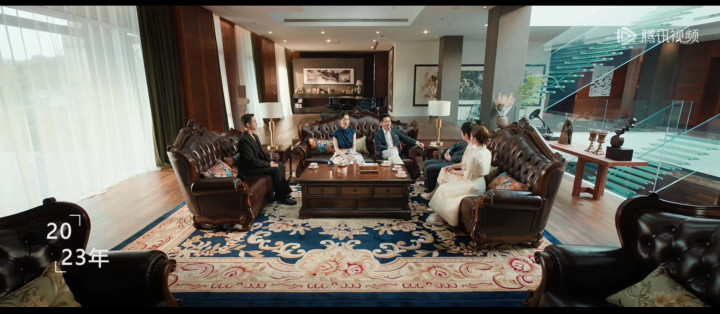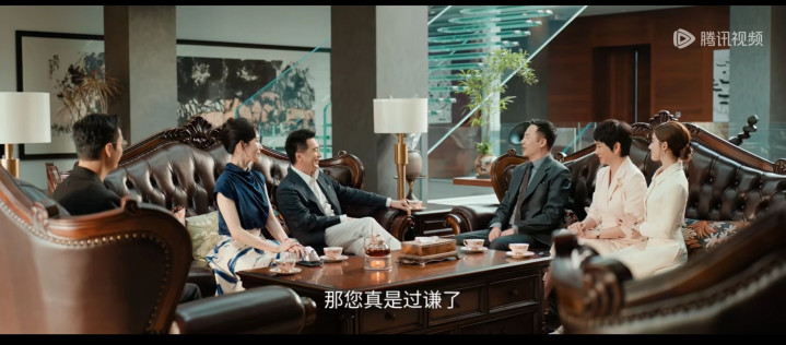 一栋豪华别墅内,一对情侣的家长正在会面,讨论两个孩子的婚事。